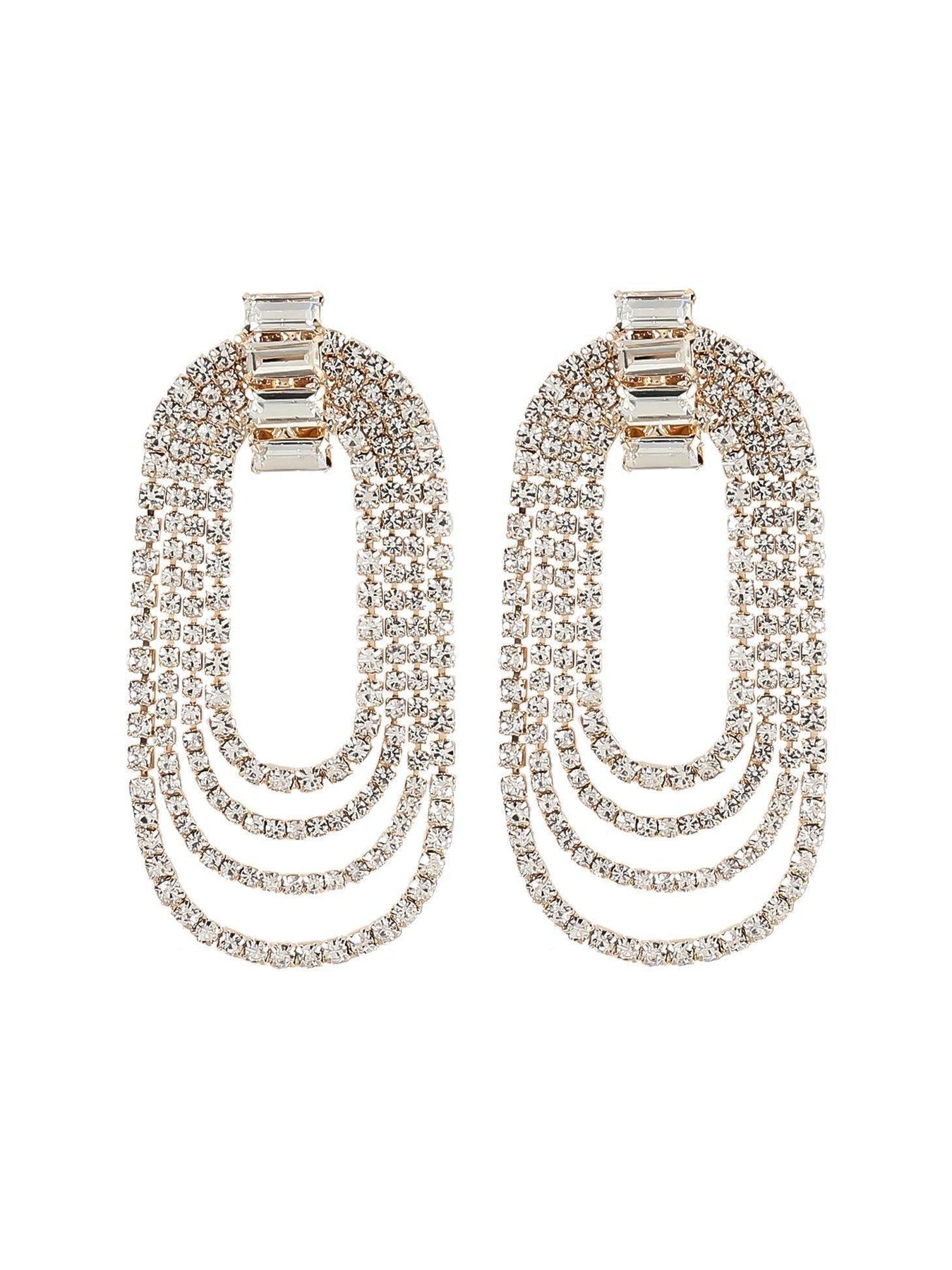 Elevate your look with these unreal earrings doll. Featuring a silver hue material with diamante detailing and an arch design, we're in love. Add these to your look for a statement finish.